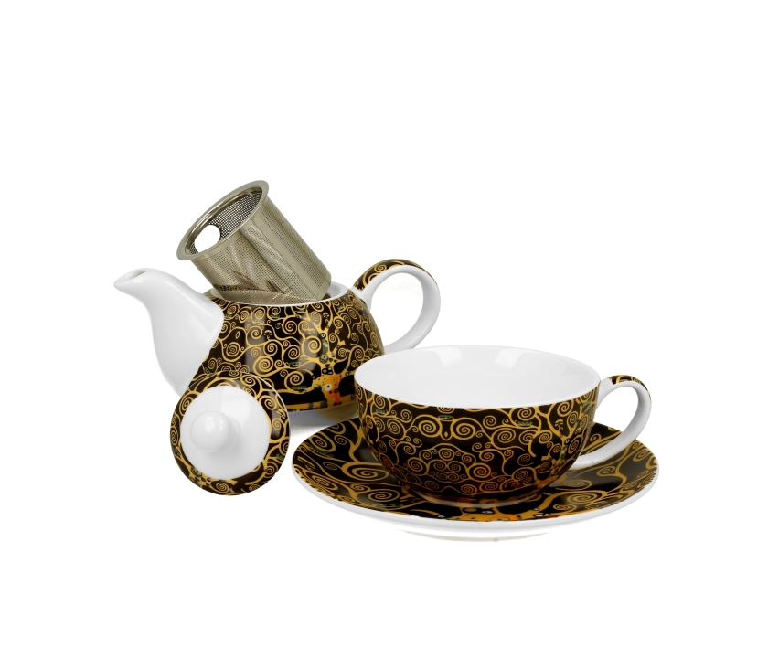 Filiżanka z dzbankiem i zaparzaczem ozdobiona malarskim motywem z obrazów artysty znanego na całym świecie. Wzór Drzewo Życia Gustava Klimta podbija również świat porcelany i wkomponowuje się w najnowsze trendy.