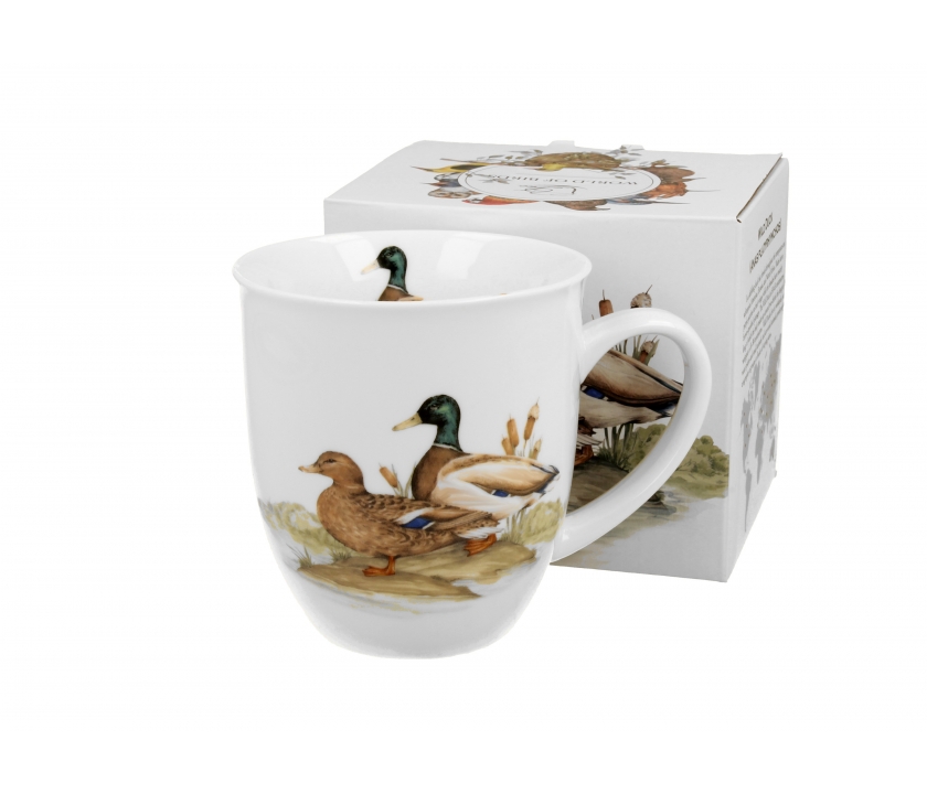 Kubek z motywem wprost ze Świata Ptaków przedstawiający Kaczki wykonany jest z tradycyjnej porcelany kostnej New Bone China.