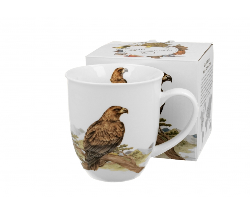 Kubek z motywem wprost ze Świata Ptaków przedstawiający Orła Przedniego wykonany jest z tradycyjnej porcelany kostnej New Bone China.