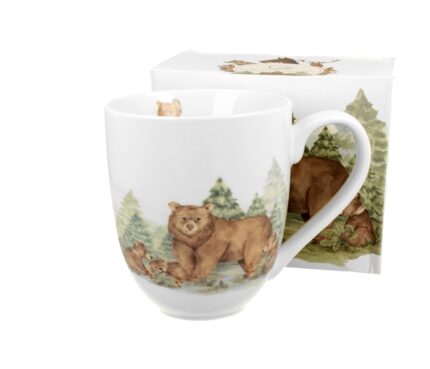 Kubek z motywem wprost ze Świata Zwierząt przedstawiający Wilki wykonany jest z tradycyjnej porcelany kostnej New Bone China.