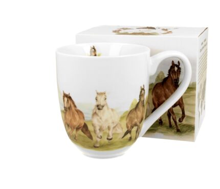 Kubek z motywem wprost ze Świata Zwierząt przedstawiający Wilki wykonany jest z tradycyjnej porcelany kostnej New Bone China.