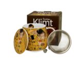 Kubek baryłka z zaparzaczem ozdobiony malarskim motywem z obrazów artysty znanego na całym świecie. Wzór Pocałunku Gustava Klimta podbija również świat porcelany i wkomponowuje się w najnowsze trendy.