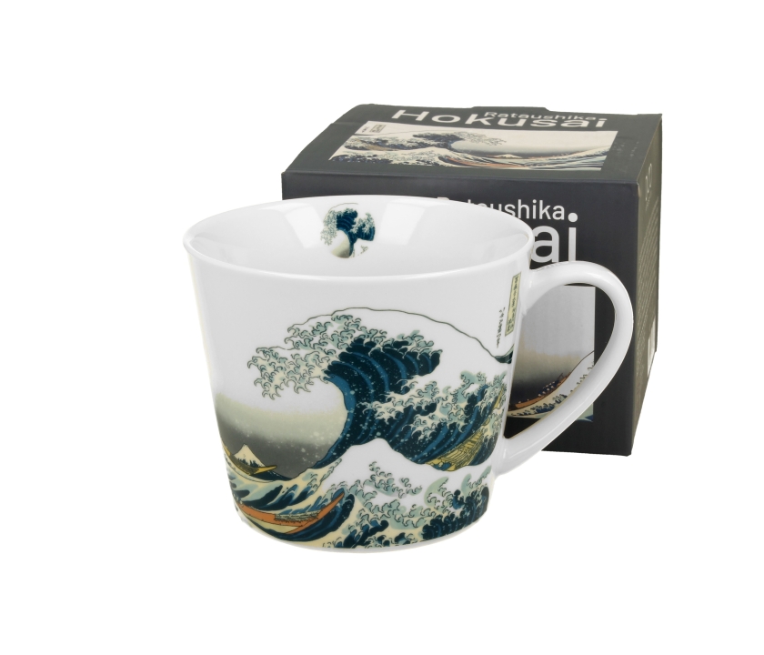 Kubek klasyczny o dużej pojemności z malarskim motywem wprost z Japonii stanowiącym najnowszy trend w świecie herbaty. Wzór Wielkiej Fali K. Hokusaia podbija również świat porcelany i wkomponowuje się w najnowsze trendy.