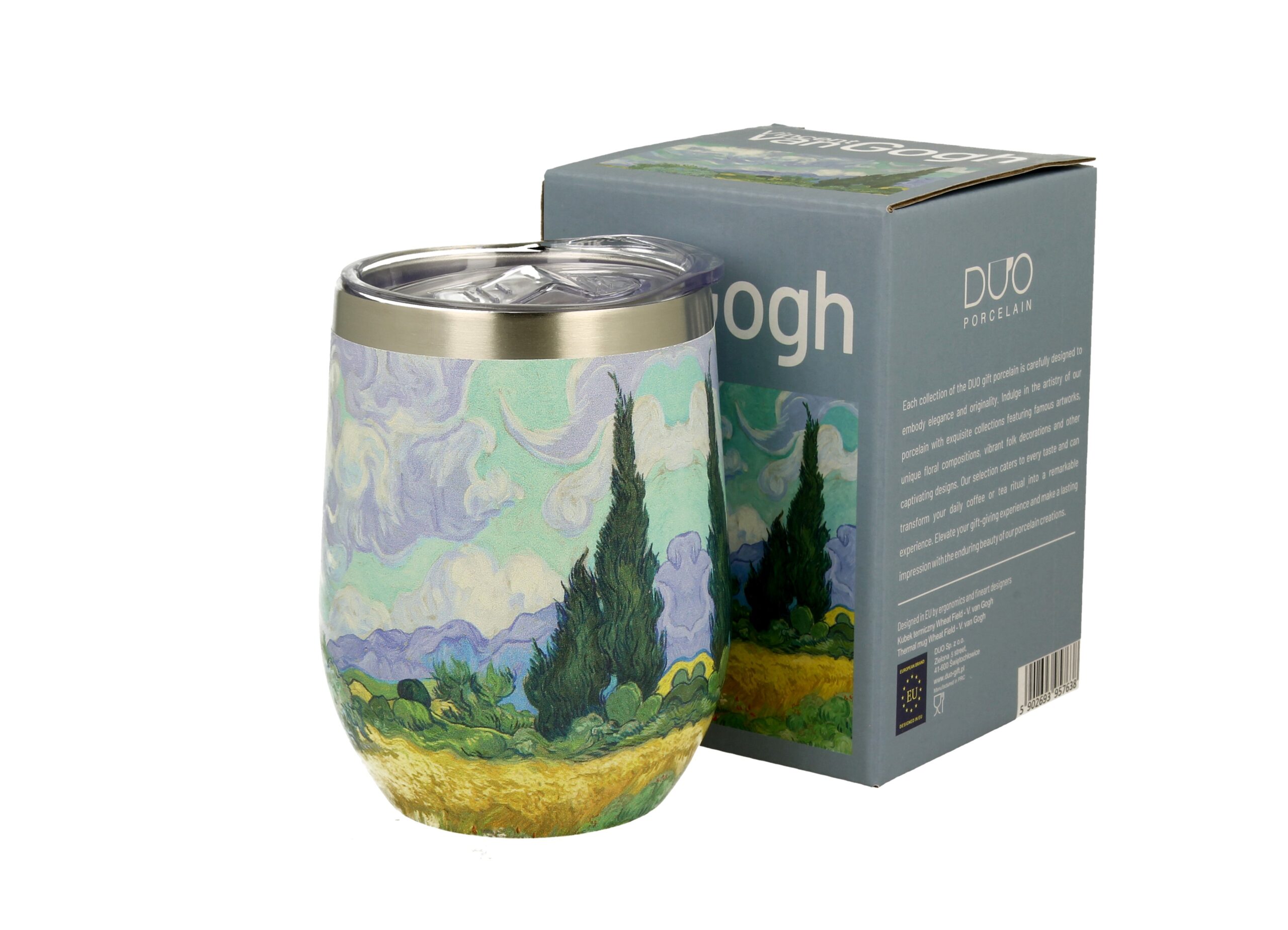 Kubek termiczny z pokrywką jest nie tylko praktyczny, ale i pełen piękna. Kolekcja malarska z całego świata z polem pszenicy Van Gogha dodatkowo umili każdy łyk herbaty i wprowadzi odrobinę piękna i ubarwi codzienne życie.