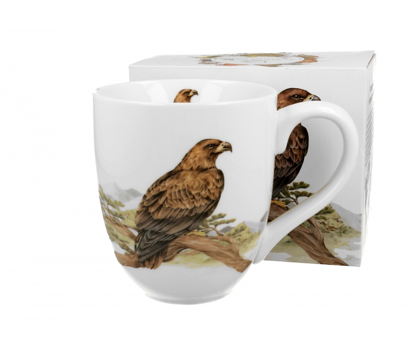 Kubek o największej dostępnej pojemności 1 litra z motywem wprost ze Świata Ptaków przedstawiający Orła Przedniego wykonany jest z tradycyjnej porcelany kostnej New Bone China.