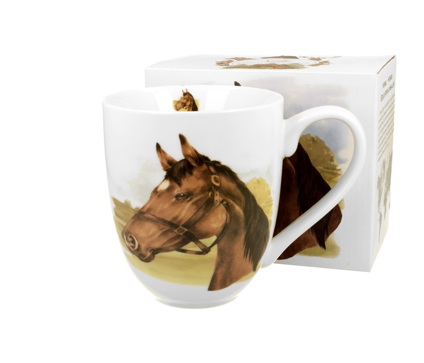 Kubek o największej dostępnej pojemności 1 litra z motywem wprost ze Świata Zwierząt przedstawiający Portret Konia wykonany jest z tradycyjnej porcelany kostnej New Bone China.