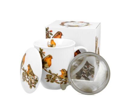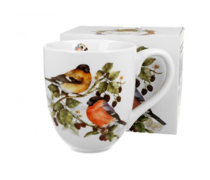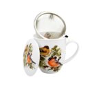 Kubek z zaparzaczem z motywem wprost ze Świata Ptaków przedstawiający Gile wykonany jest z tradycyjnej porcelany kostnej New Bone China.